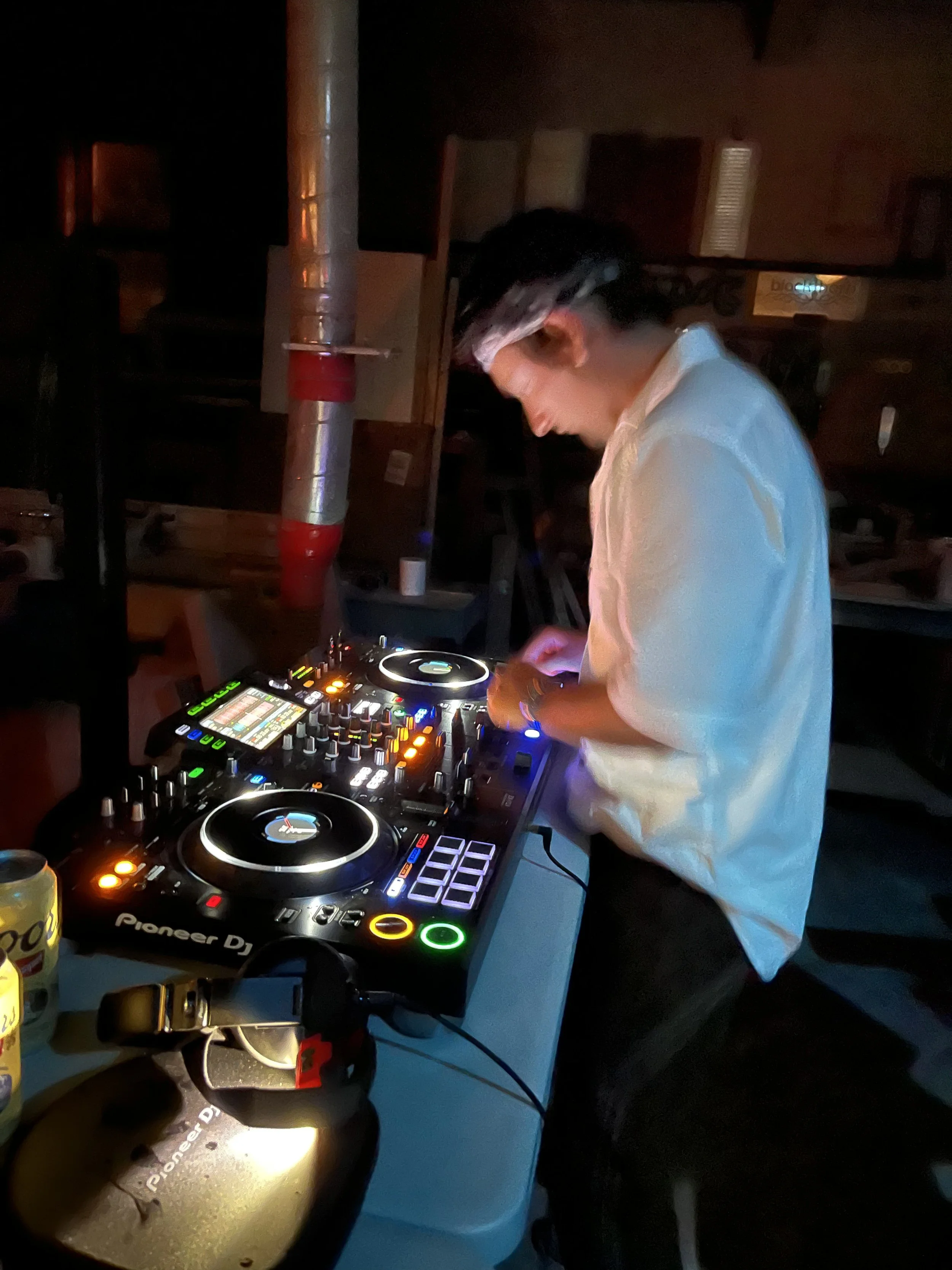 DJs H.ARMiN^e, DanAconda, and Palu spinning beats from the Tiny Piney Treehouse.